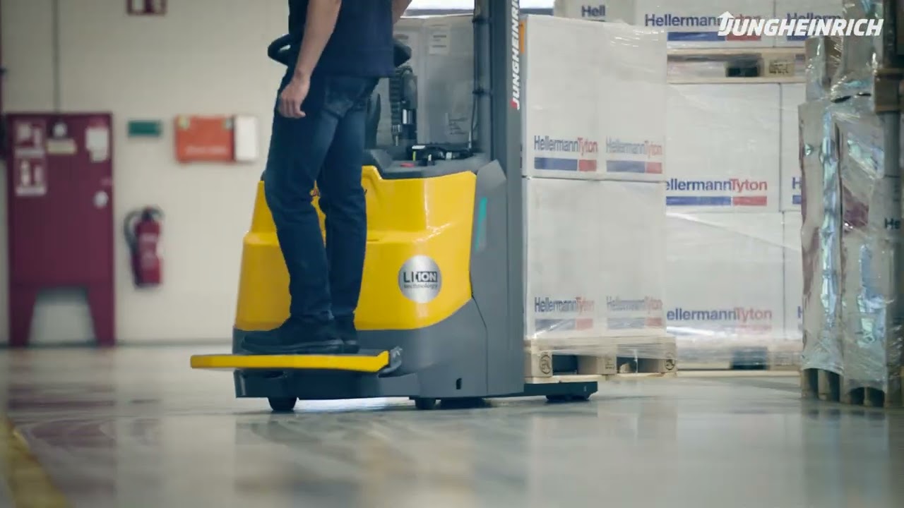La carretilla elevadora eléctrica Jungheinrich ERC 110i DZ con plataforma de pie y mástil telescópico triple con elevación libre ha sido desarrollada para aplicaciones de almacén exigentes en espacios reducidos. Gracias a su diseño compacto, sus pequeñas dimensiones frontales y su pequeño radio de giro, el apilador con barra timón es especialmente adecuado para su aplicación en pasillos estrechos y áreas de almacenamiento confinadas. La plataforma de pie se puede utilizar de forma flexible: para una conducción ergonómica en distancias medias y largas o como dispositivo para peatones en espacios reducidos.