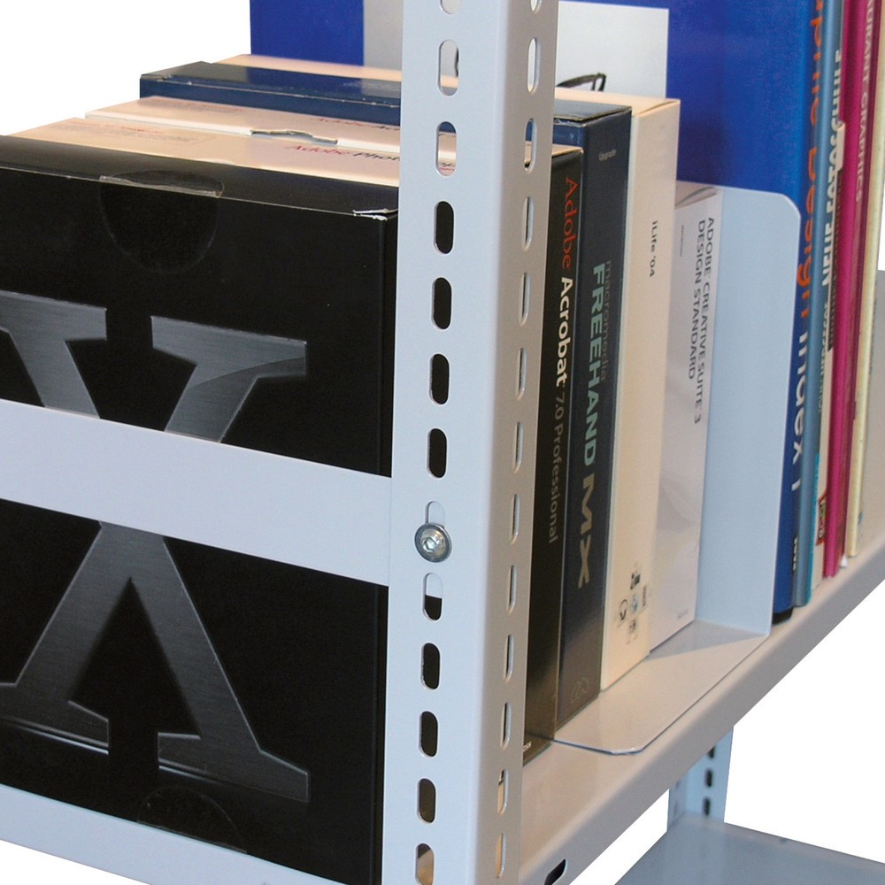 Con este sistema de estanterías para su oficina, no perderá nunca de vista sus documentos. Monte bandejas para archivadores de manera sencilla y oriente el contenido de los estantes de forma ordenada hacia el tope final. El sistema de encajado modular destaca por su versatilidad y la posibilidad de ampliar el módulo inicial de la estantería mediante módulos adicionales.