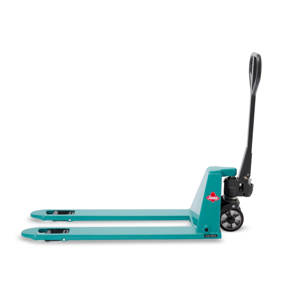 La transpaleta manual de chasis bajo Ameise®, longitud de horquillas 1.150 mm es fiable e infinidad de veces contrastada para un uso diario y prolongado. Haga aquí su pedido de la transpaleta con 1.500 kg de capacidad de carga para el transporte de palets planos, en la versión que desee, en nuestra tienda.